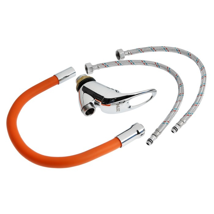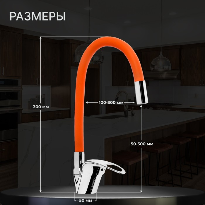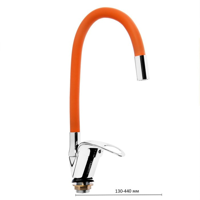 Смеситель для кухни ZEIN Z2114, однорычажный, гибкий излив, картридж 40 мм, оранжевый/хром