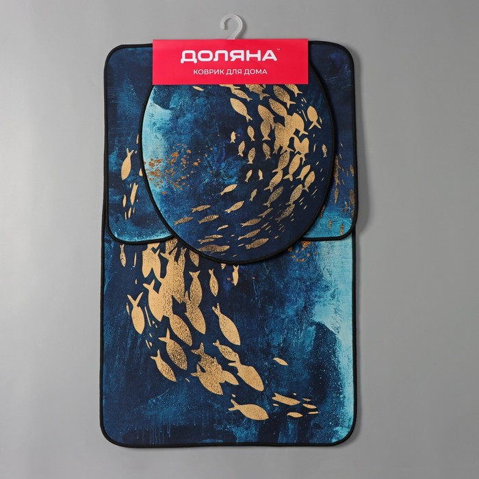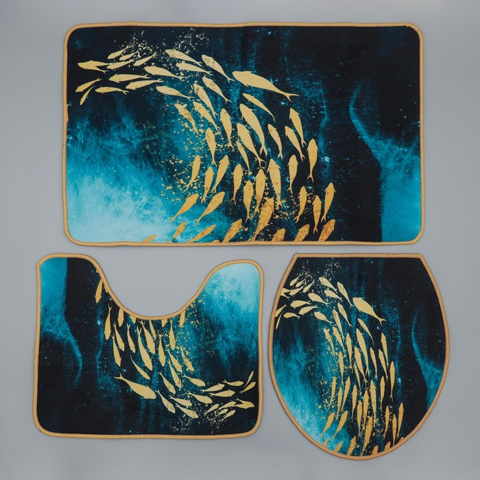 Коврики для ванной и туалета Доляна «Рыбки», 3 шт: 50×80 см, 50×40 см, 40×43 см