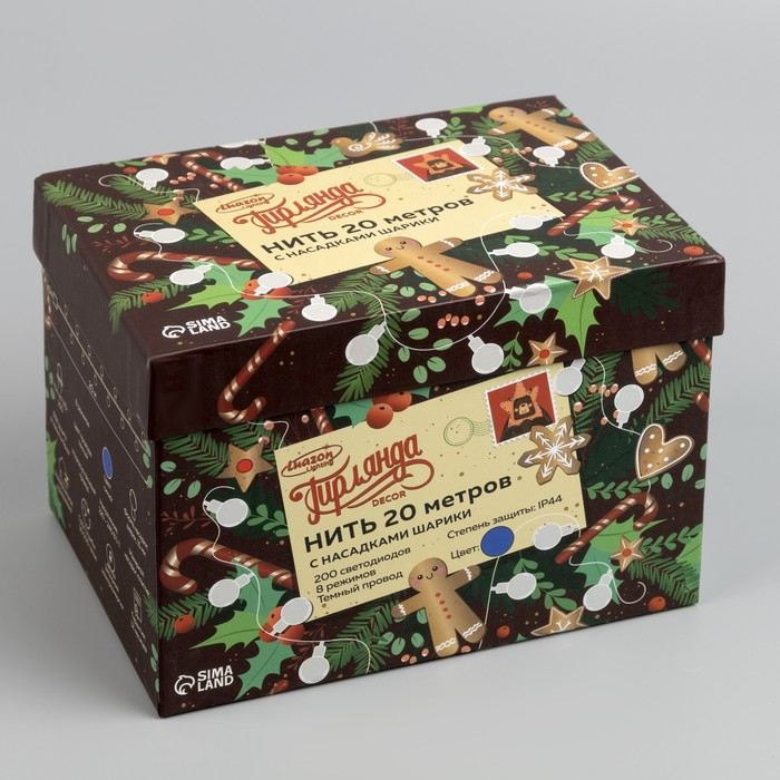 Гирлянда «Нить» 20 м с насадками «Шарики 1.5 см», IP44, тёмная нить, 200 LED, свечение синее, 8 режимов, 220 В