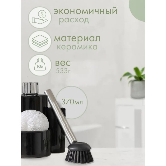 Дозатор для моющего средства Доляна «Милитари», 370 мл, с губкой и щёткой, цвет чёрный