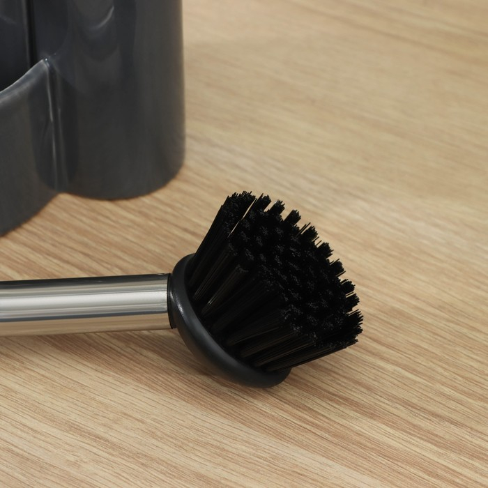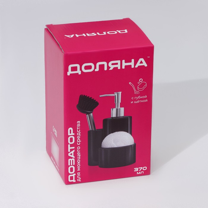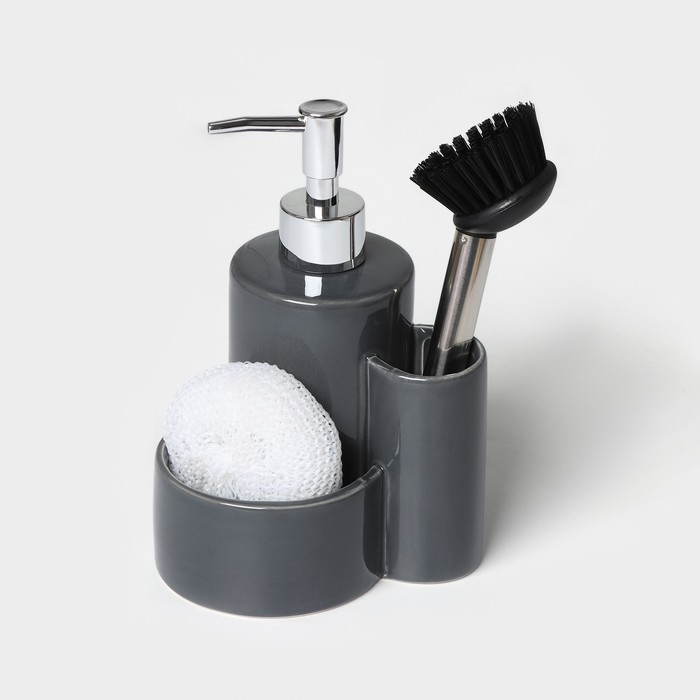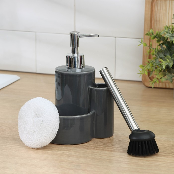 Дозатор для моющего средства Доляна «Милитари», 370 мл, с губкой и щёткой, цвет серый