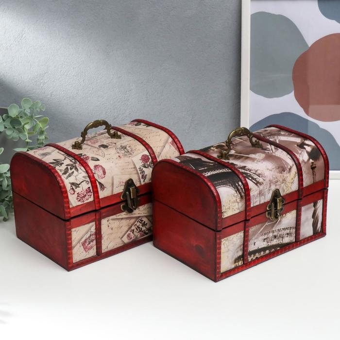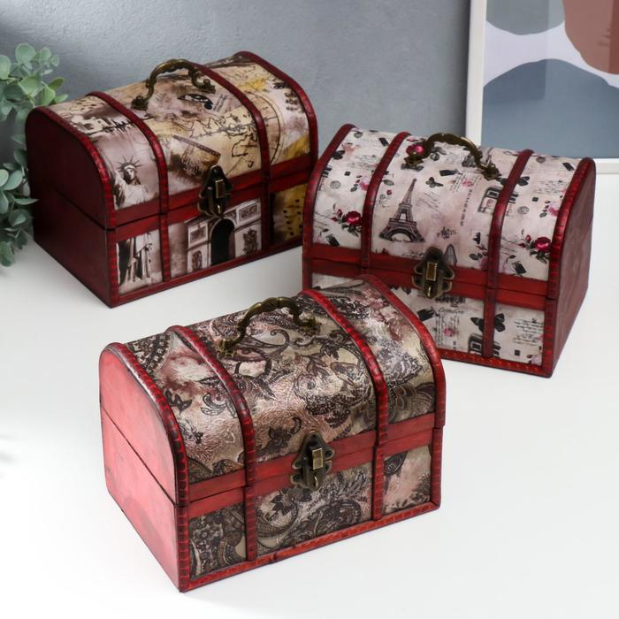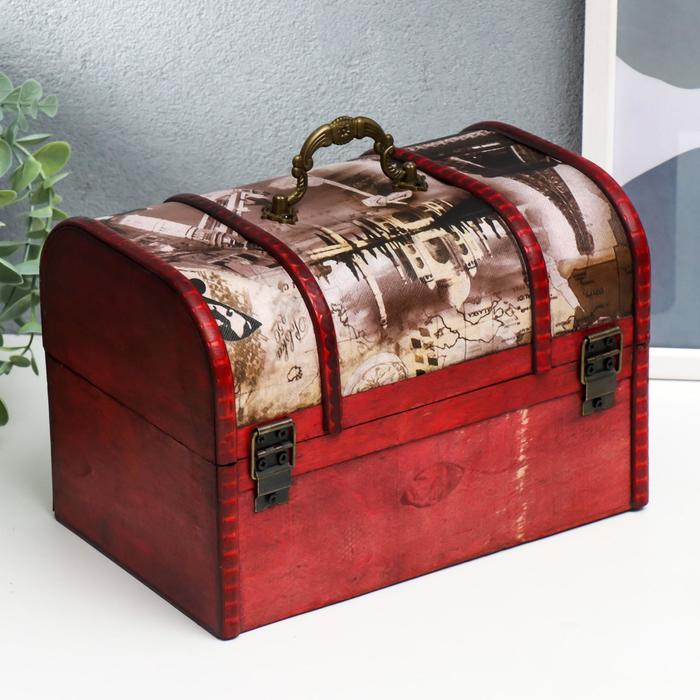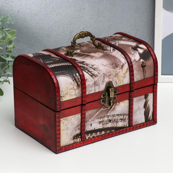 Шкатулка дерево состаренная "Цветы и города" сундучок МИКС 15х22х15,5 см