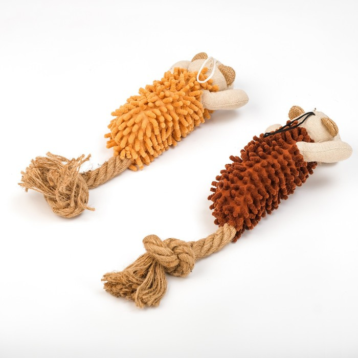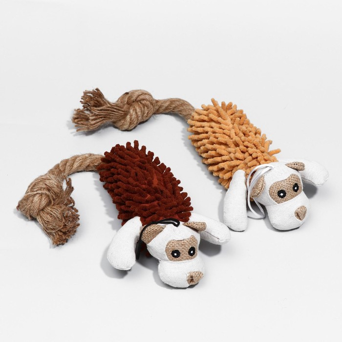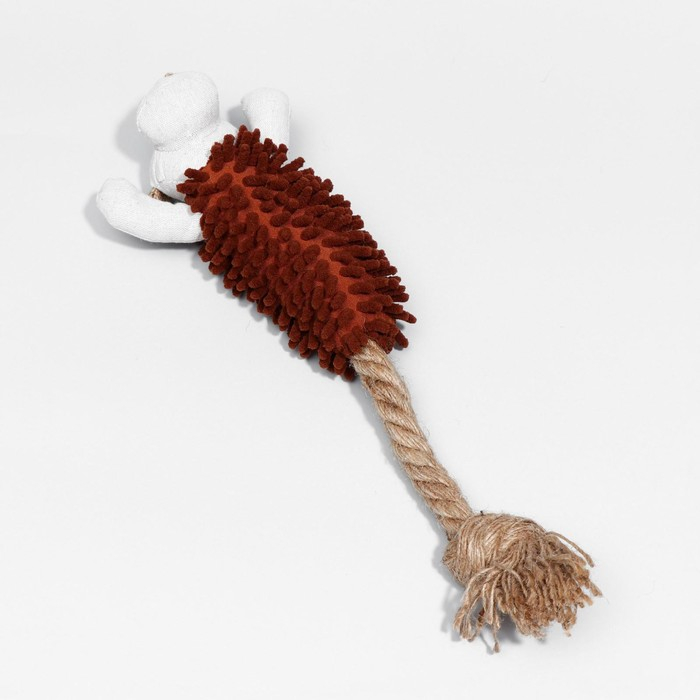 Игрушка мягкая для собак "Пёс" с пищалкой и канатом, 39 х 11 см, коричневая