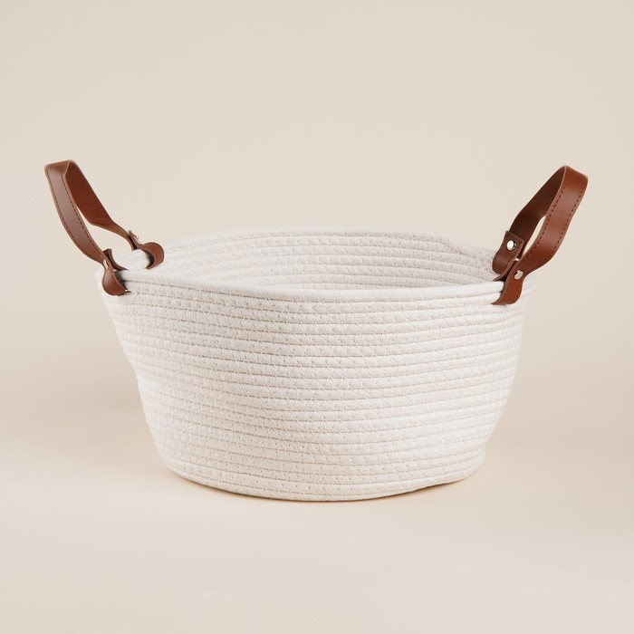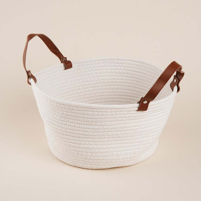 Эта корзина выполнена вручную из экологичного текстиля, что не только подчёркивает её уникальность, но и обеспечивает долговечность и надёжность. Благодаря универсальному белому цвету и круглой форме, она идеально впишется в любой интерьер, будь то скандинавский минимализм или тёплый кантри-стиль.