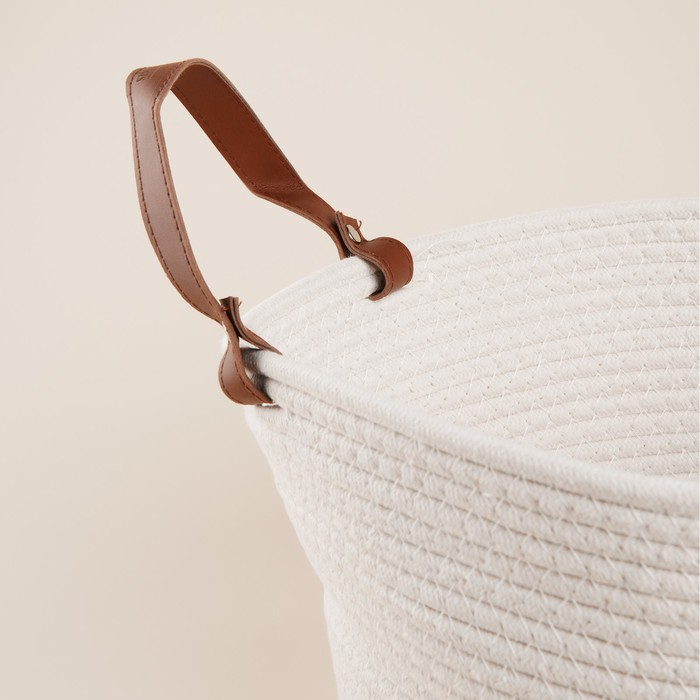 Элегантная плетёная корзина для хранения станет вашим незаменимым помощником в организации пространства и добавит в дом нотку уюта и стиля. С её помощью вы легко приведёте в порядок любые мелочи, от одежды до аксессуаров для рукоделия, сохранив при этом гармонию интерьера.