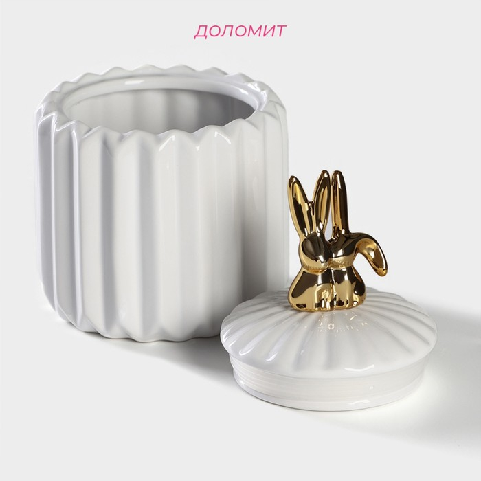 Банка для хранения сыпучих продуктов Доляна «Золотой зайка», 900 мл, 12×18 см, керамическая, цвет белый