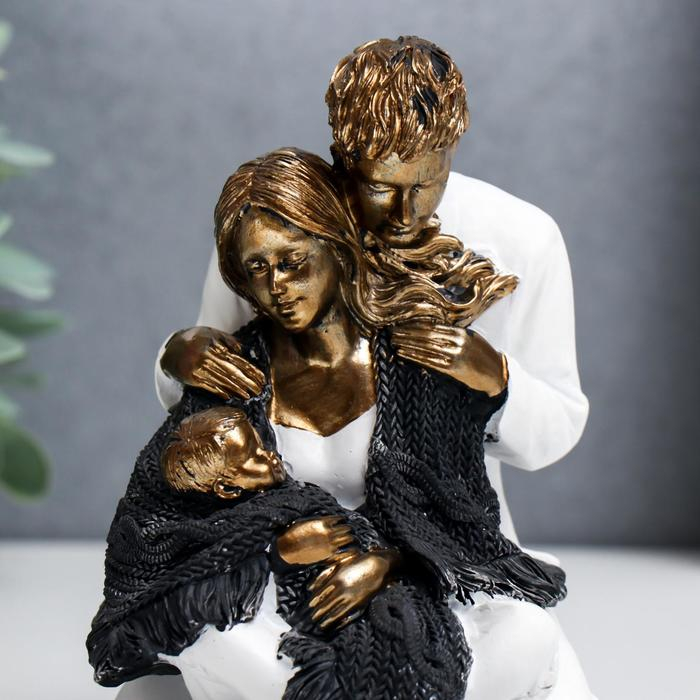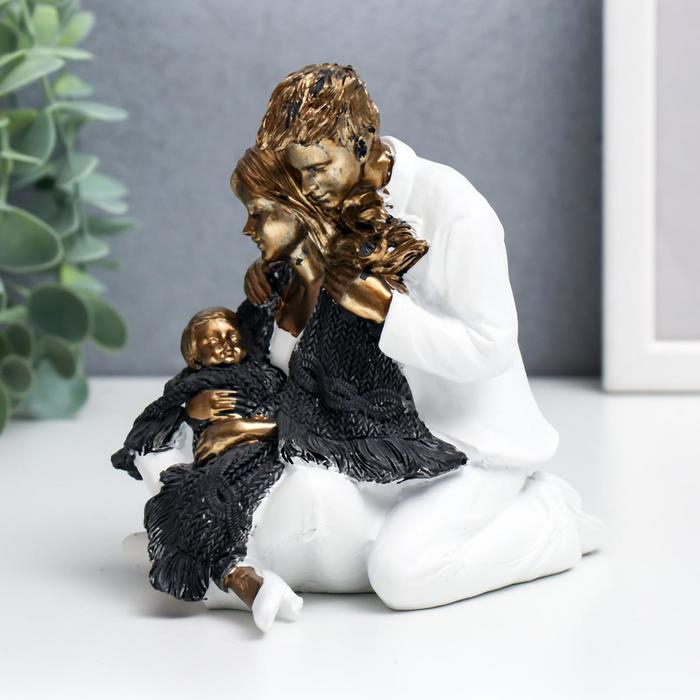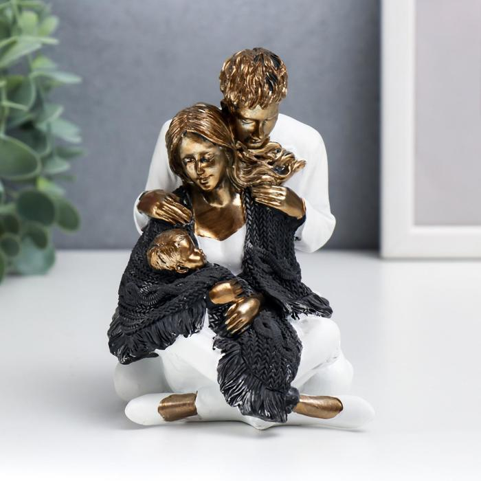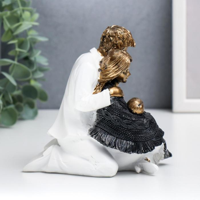 Сувенир полистоун "Папа, мама и ребёнок в белой одежде, укрытые шарфом" 12,5х9х13,5 см