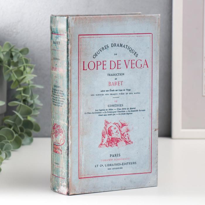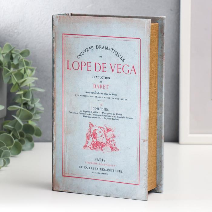 Сейф-книга дерево кожзам "Лопе де Вега. Драматические произведения" серая 21х13х5 см