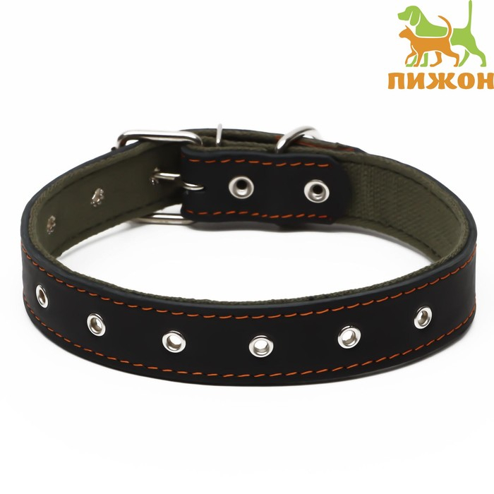 Наш кожаный ошейник обшит брезентом с внутренней стороны.