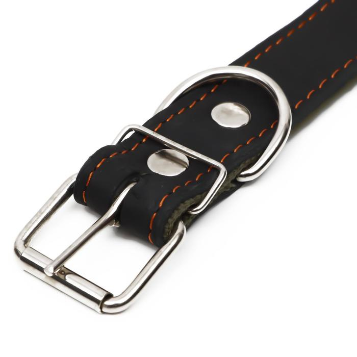 Ошейник кожаный на синтепоне, безразмерный, 71 х 3,5 см, ОШ 29-62 см, чёрный