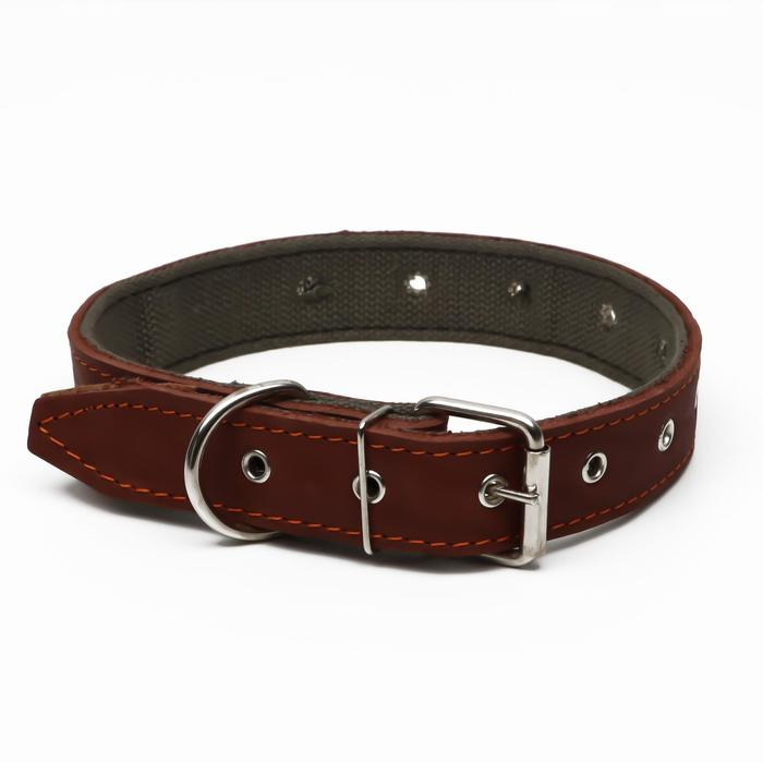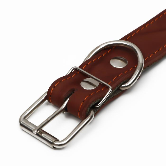 Ошейник кожаный на синтепоне, безразмерный, 71 х 3,5 см, ОШ 29-62 см, коричневый