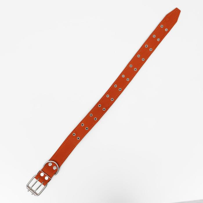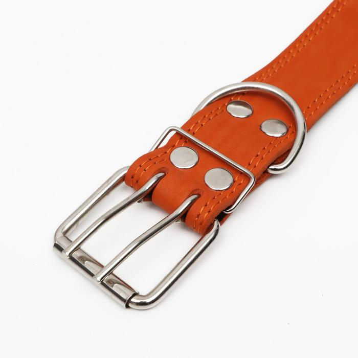 Ошейник кожаный на синтепоне, безразмерный, 83 х 4.5 см, ОШ 20-71 см, оранжевый