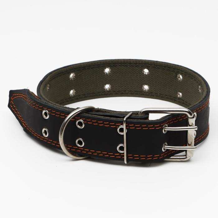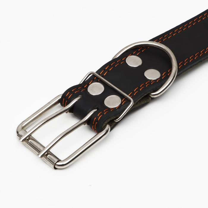 Ошейник кожаный двухслойный, 85 х 4.5 см, ОШ 50-70 см, чёрный