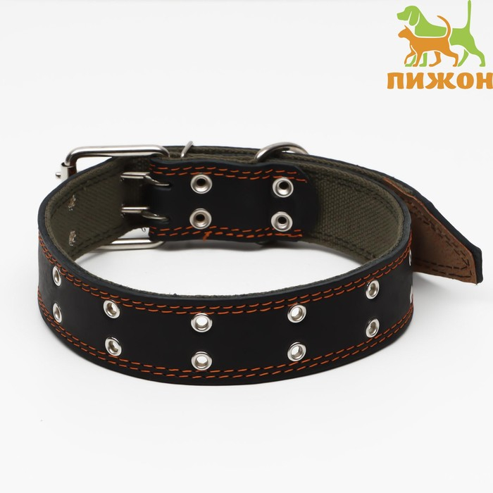 Ошейник кожаный на синтепоне, 82 х 4.5 см, ОШ 50-70 см, чёрный