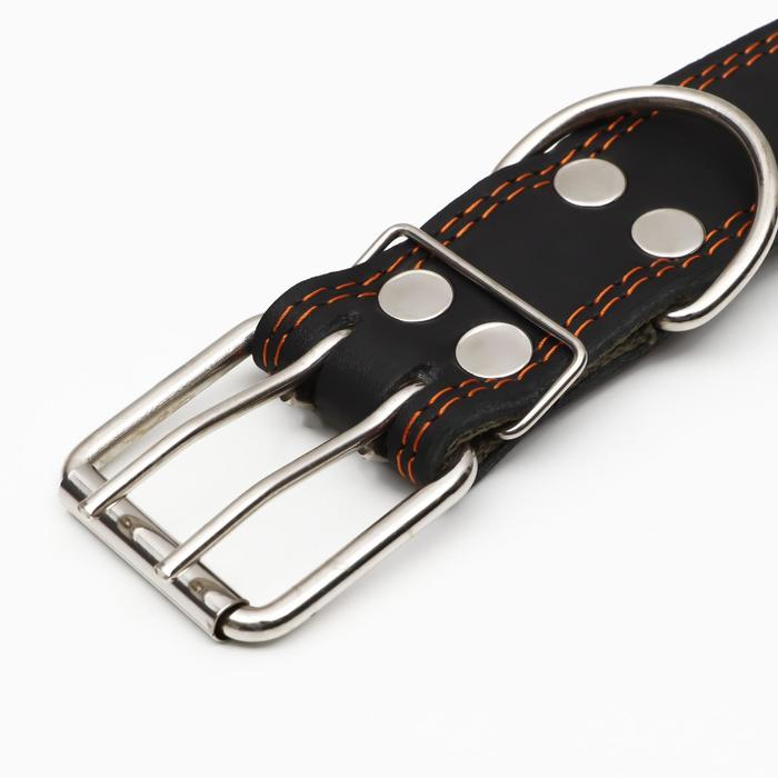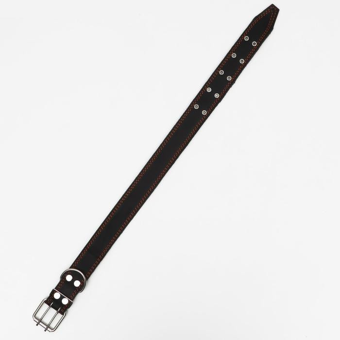 Ошейник кожаный двухслойный, 85 х 4.5 см, ОШ 50-70 см, чёрный