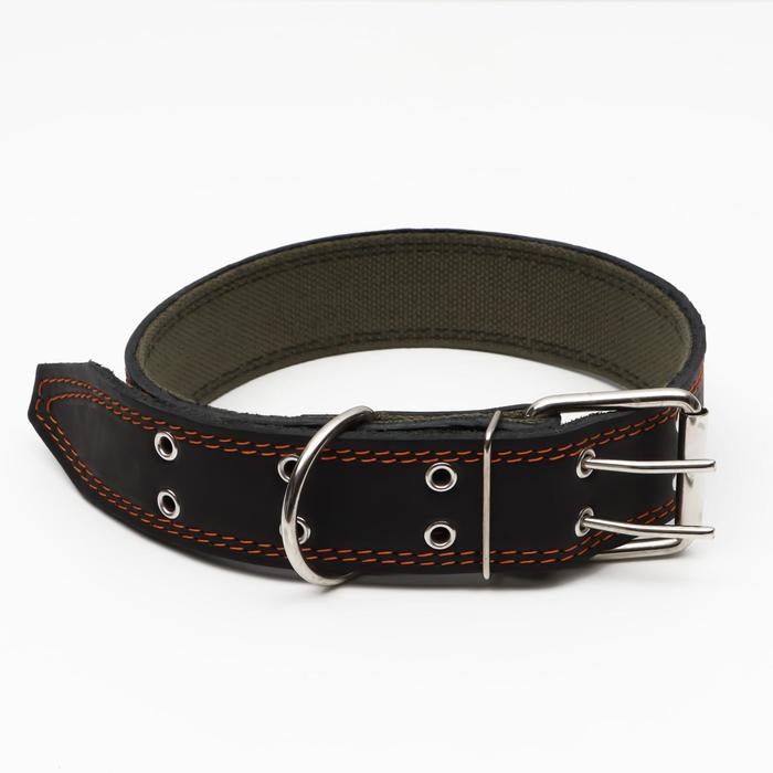 Ошейник кожаный на синтепоне, 82 х 4.5 см, ОШ 50-70 см, чёрный