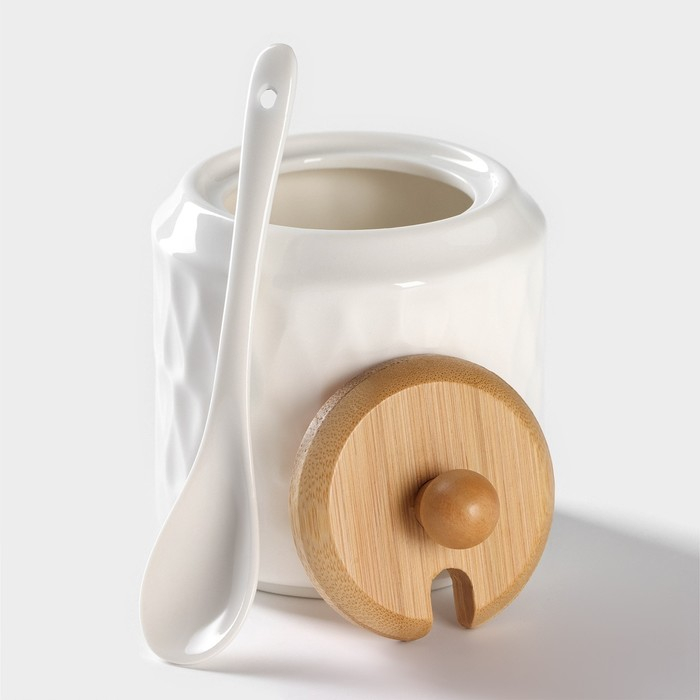 Набор фарфоровый для специй BellaTenero, 3 предмета: солонка 80 мл, перечница 80 мл, сахарница с ложкой 300 мл, цвет белый