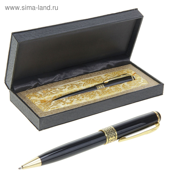 Ручка подарочная, шариковая "Вензура" в кожзам футляре, поворотная, корпус черный с золотым