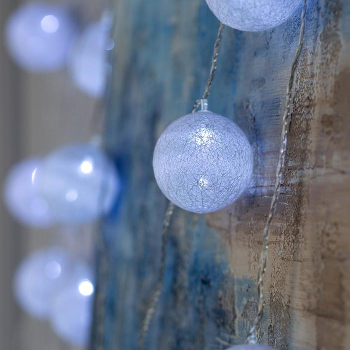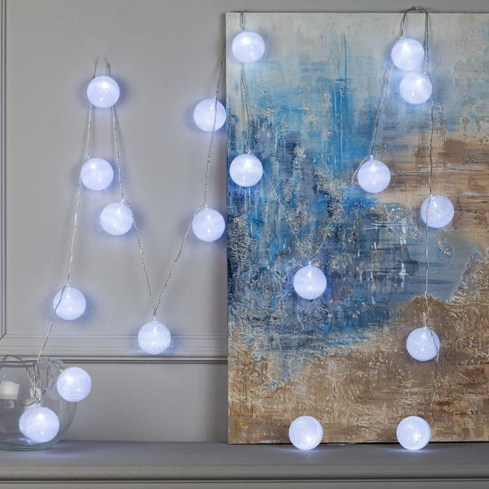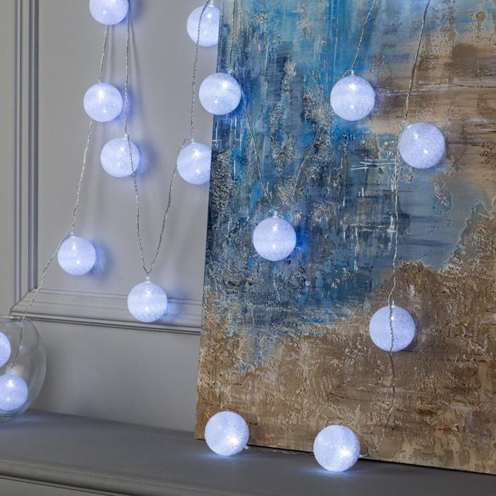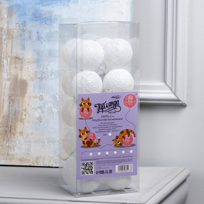 Гирлянда «Нить» 5 м с насадками «Клубки белоснежные», IP20, прозрачная нить, 20 LED, свечение белое, 220 В