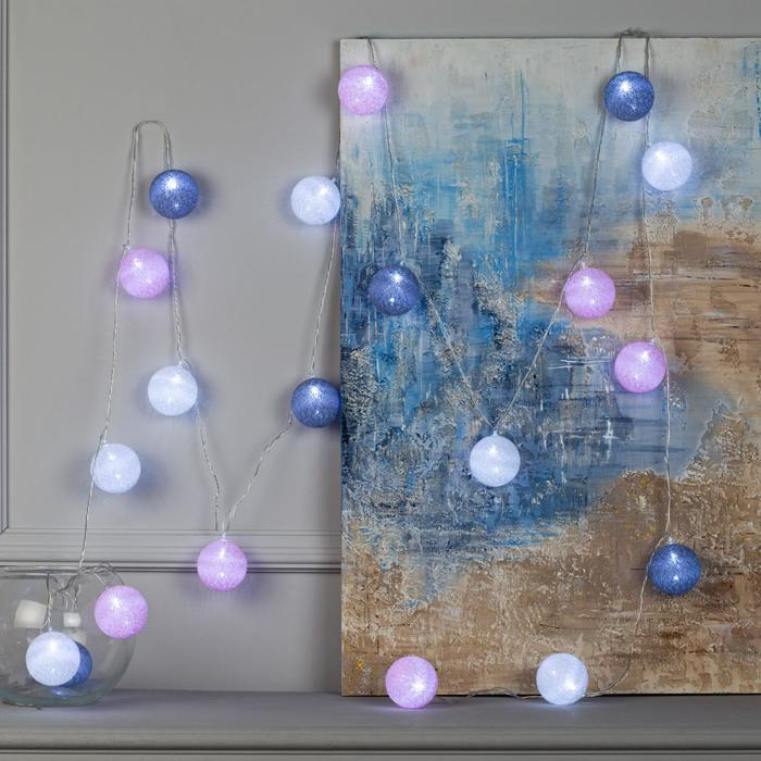 Гирлянда «Нить» 3 м с насадками «Шарики», IP20, прозрачная нить, 20 LED, батарейки AAх3 (нет в комплекте), свечение мульти