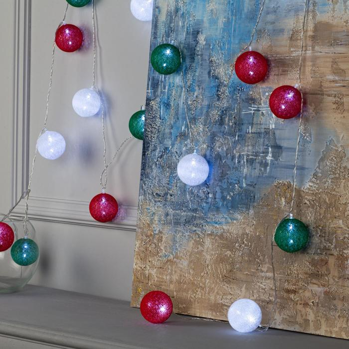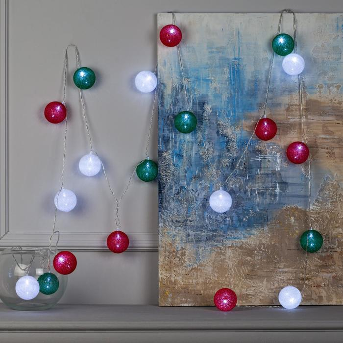 Гирлянда «Нить» 3 м с насадками «Шарики», IP20, прозрачная нить, 20 LED, батарейки AAх3 (нет в комплекте), свечение мульти