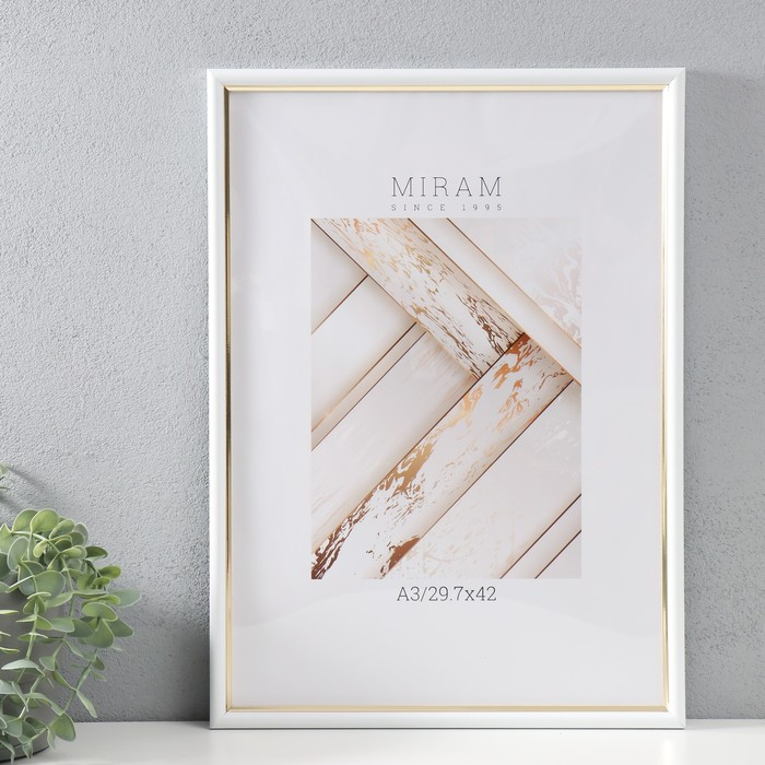 Фоторамка пластик Gallery 29.7х42 см, (А3) 636461, белый с золотом (пластиковый экран)