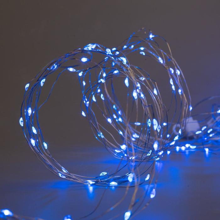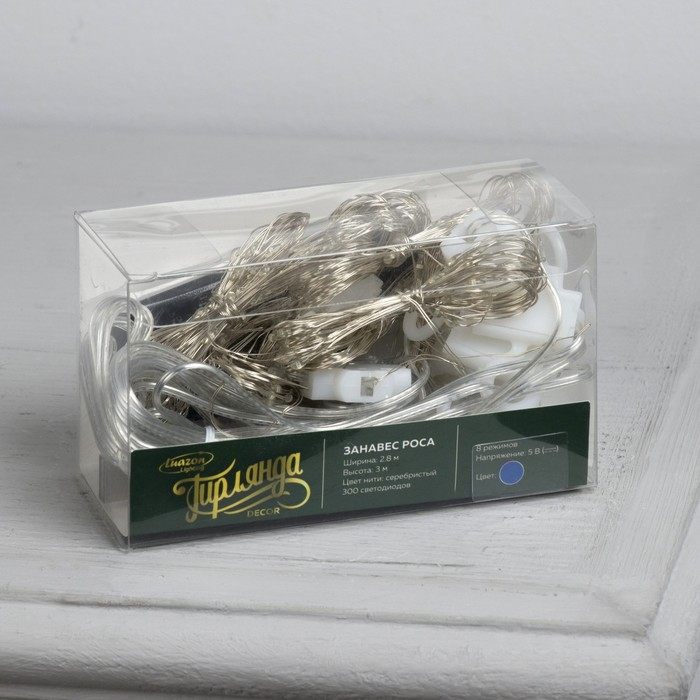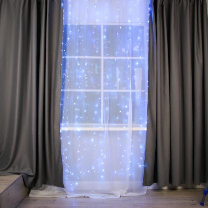Гирлянда «Занавес» 2.8 × 3 м роса на крючках, с пультом, IP20, серебристая нить, 300 LED, свечение синее, 8 режимов, USB