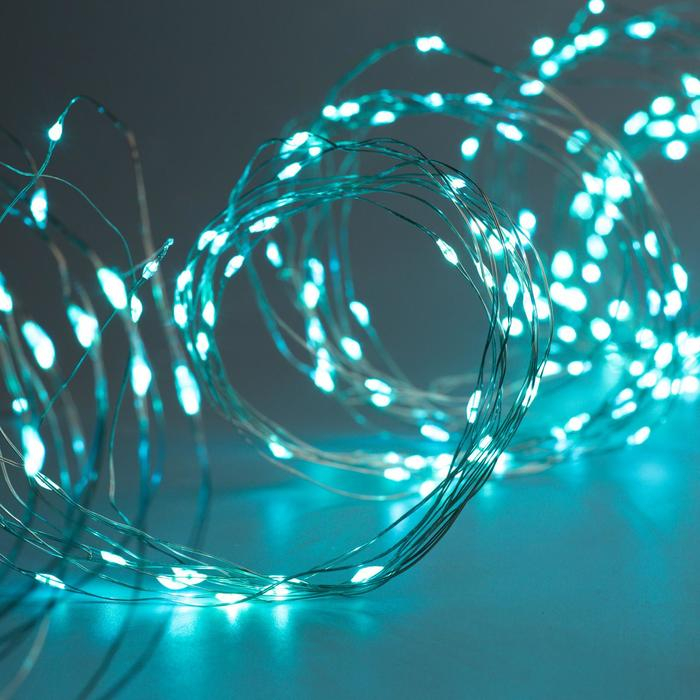 Гирлянда «Занавес» 2.8 × 3 м роса на крючках, с пультом, IP20, серебристая нить, 300 LED, свечение аквамарин, 8 режимов, USB