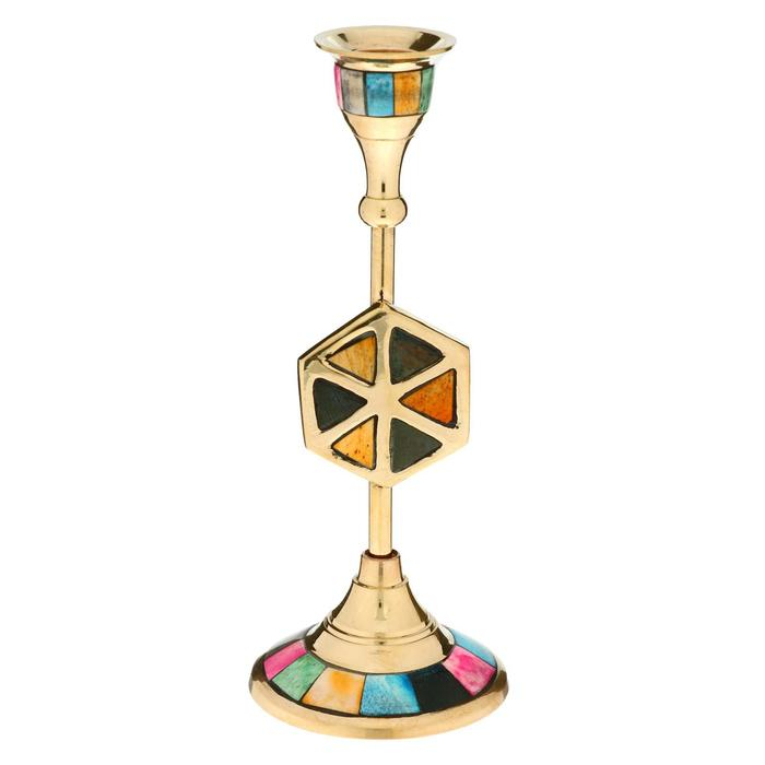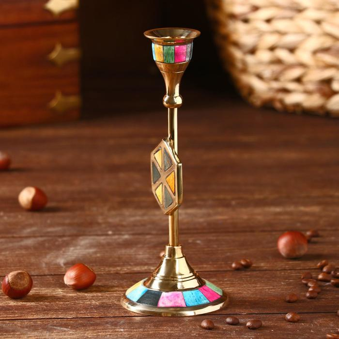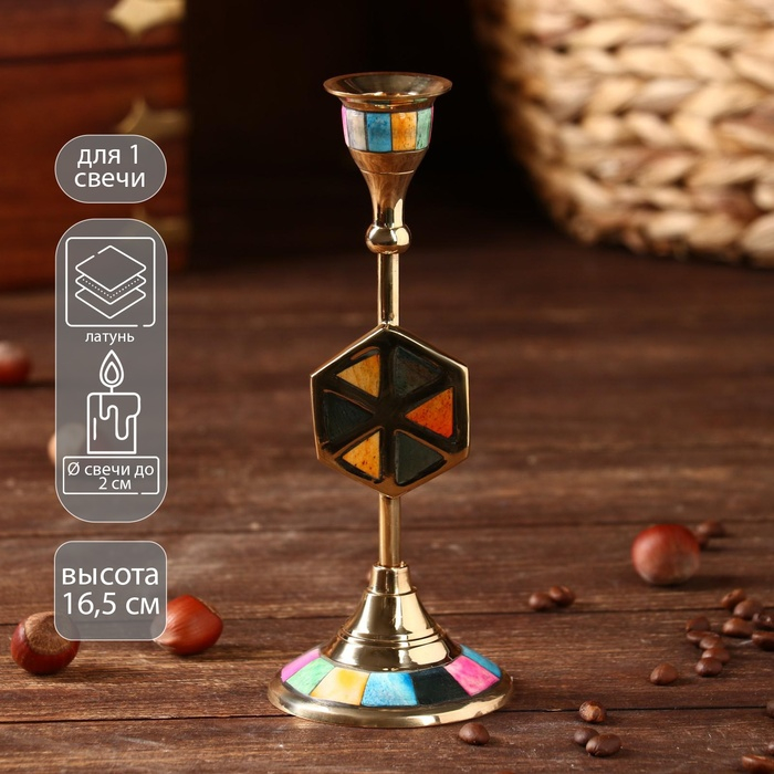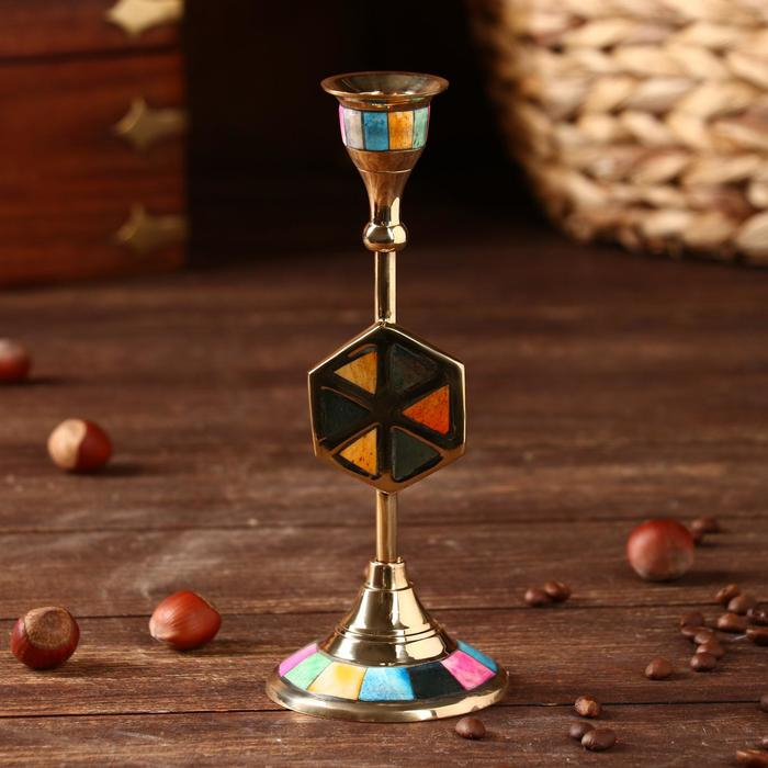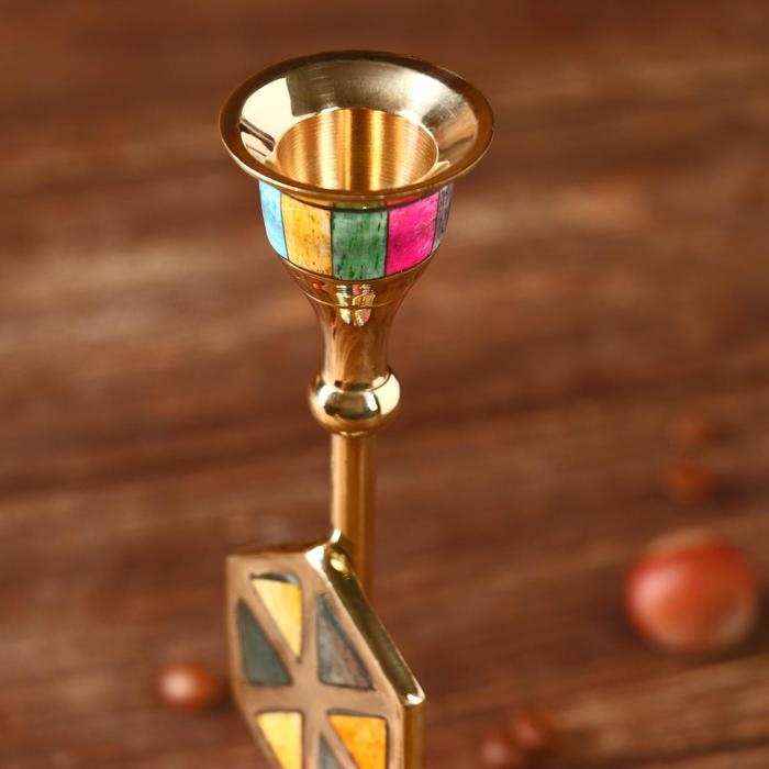 Подсвечник "Калейдоскоп" латунь, перламутр 7х7х18 см