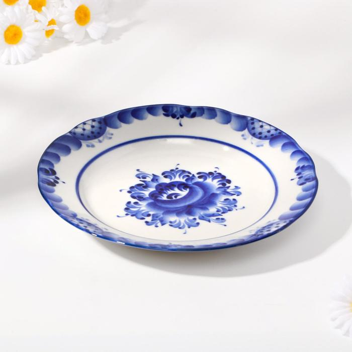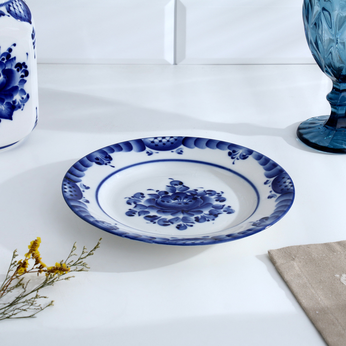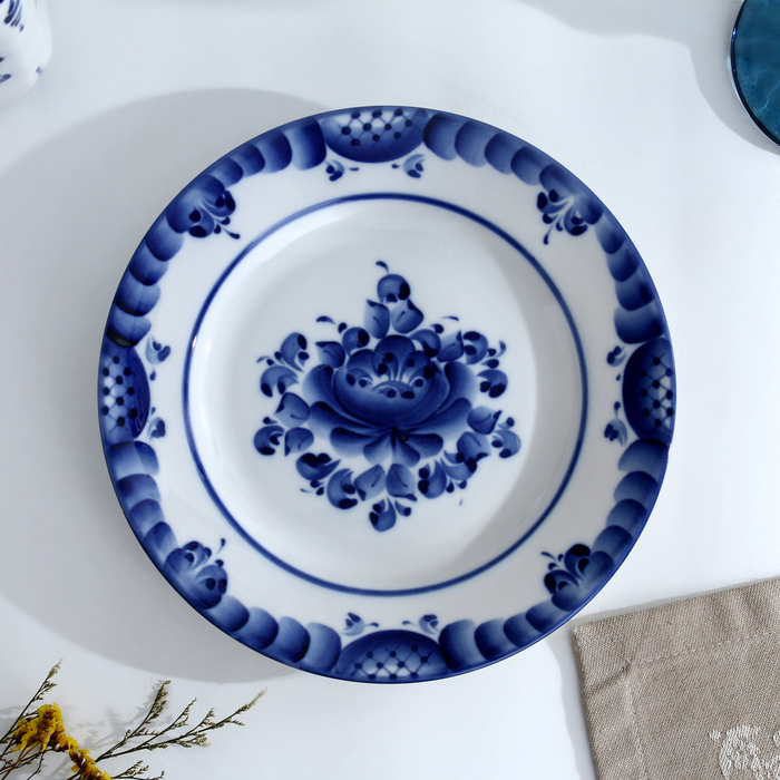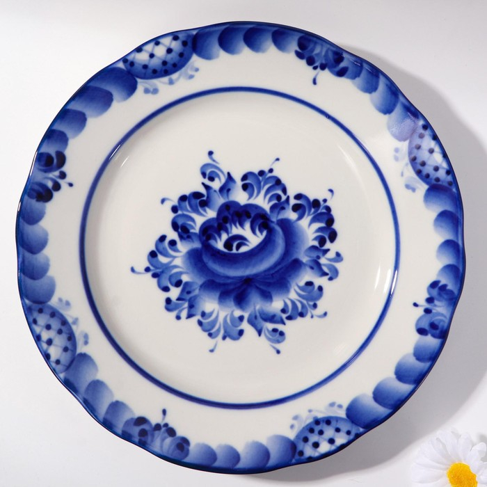 Тарелка «Цветы», плоская, D=20 см, гжель
