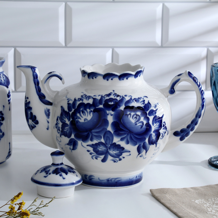 Чайник «Семейный», H=19 см, 2,1 л, гжель