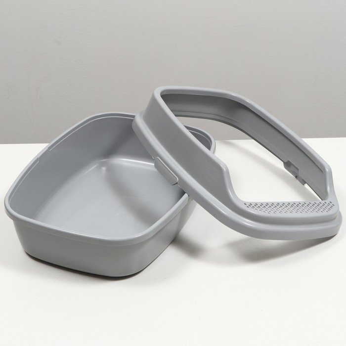 Пластиковый лоток для кошек с бортами удобен в использовании.