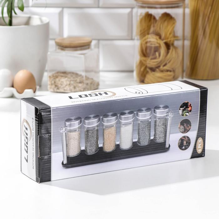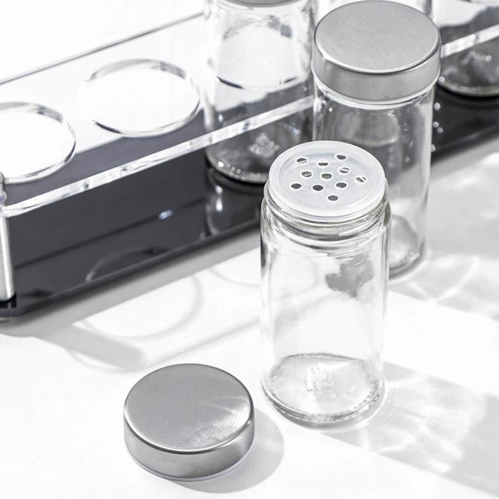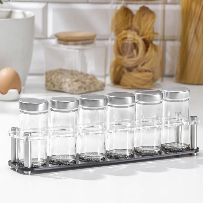 Набор для специй из стекла на подставке «Хай-тек», 90 мл, 33×6,7×10,5 см, 4×9,5 см, 6 шт