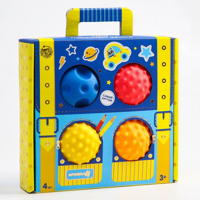 Набор развивающих тактильных мячиков «Чемоданчик», с пищалкой, 4 шт, Крошка Я