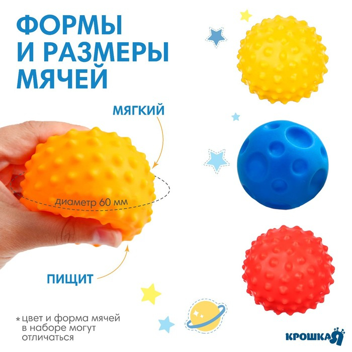Мячики выполнены из приятного на ощупь материала, и малышам очень удобно держать их в руках.
