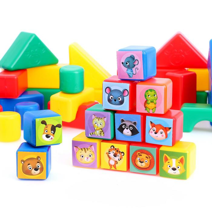Набор цветных кубиков, «Животные», 38 элементов, 4х4 см