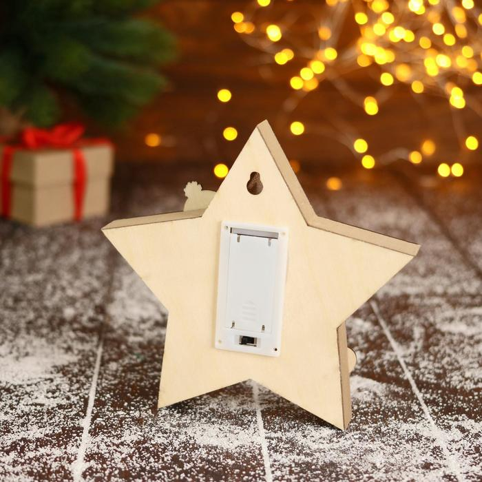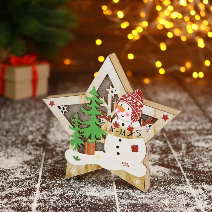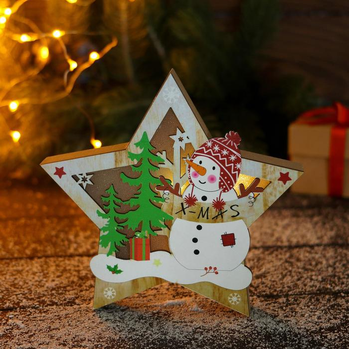 Фигурка новогодняя свет "Снеговик в лесу с подарками, в звезде" 16,5х16 см