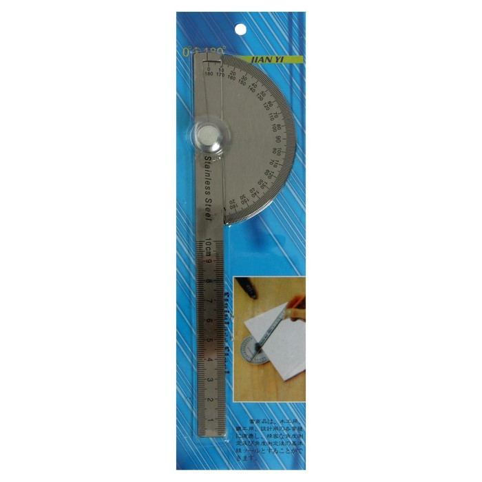 Линейка-транспортир из нержавеющая стали (10 см) будет верным помощником при построении различного рода чертежей, схем и графических рисунков. Линии получатся идеально ровными благодаря такому же ровному краю. Состав: металл.