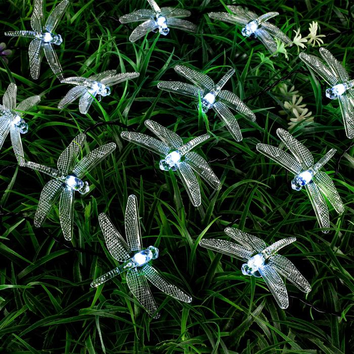 Гирлянда «Нить» 4.5 м с насадками «Стрекозы», IP44, тёмная нить, 30 LED, свечение белое, 2 режима, солнечная батарея