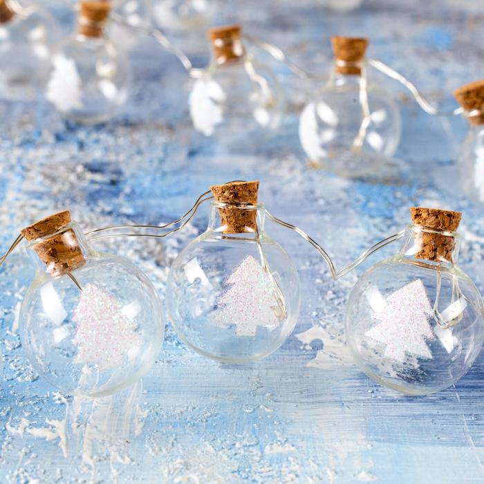 Гирлянда «Нить» 1.6 м с насадками «Шарики с ёлочкой», IP20, серебристая нить, 15 LED, батарейки ААх2 (нет в комплекте), свечение мульти