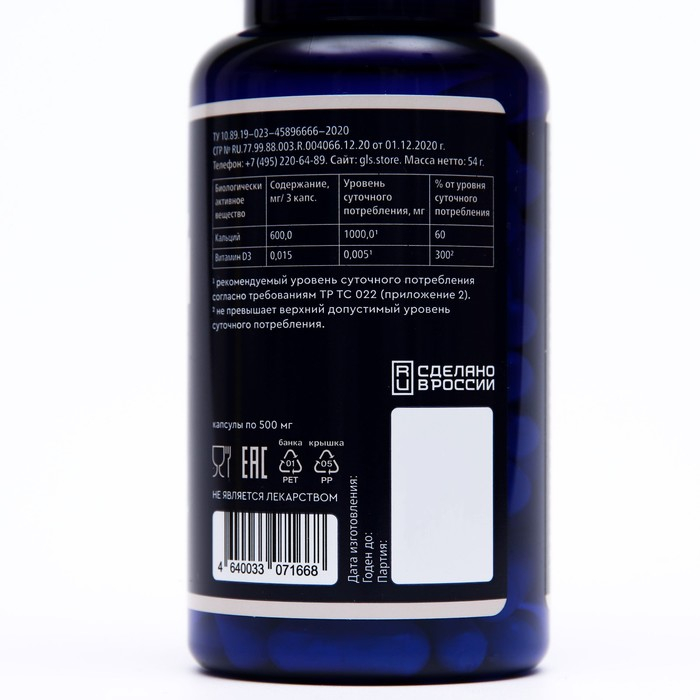 - Кальция карбонат — 1498 мг. (в т.ч. кальция 600 мг.);