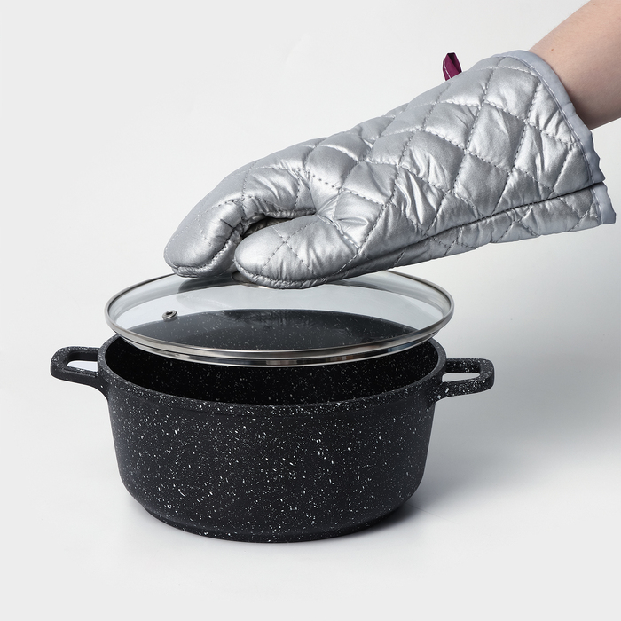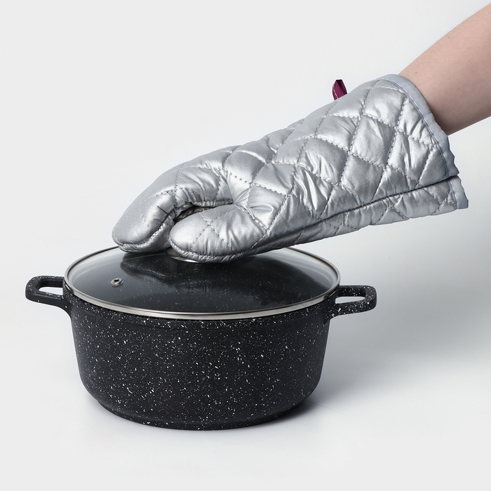 Рукавица для горячего Доляна «Ребрис», силикон, 22×17 см, цвет розовый
