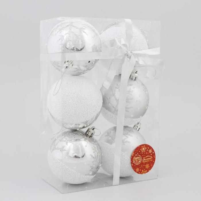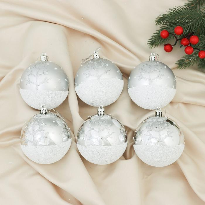 Набор шаров пластик d-8 см, 6 шт "Заснеженный лес" серебро