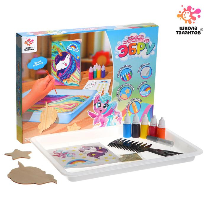 Набор для рисования эбру: краски 6 цв по 6 мл, 10 листов бумаги, загуститель 10 г, инструменты, поддон