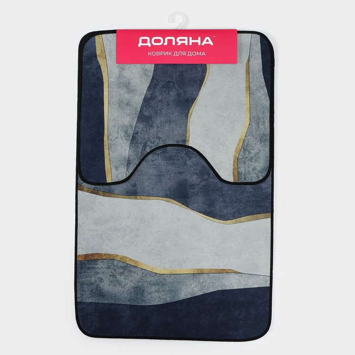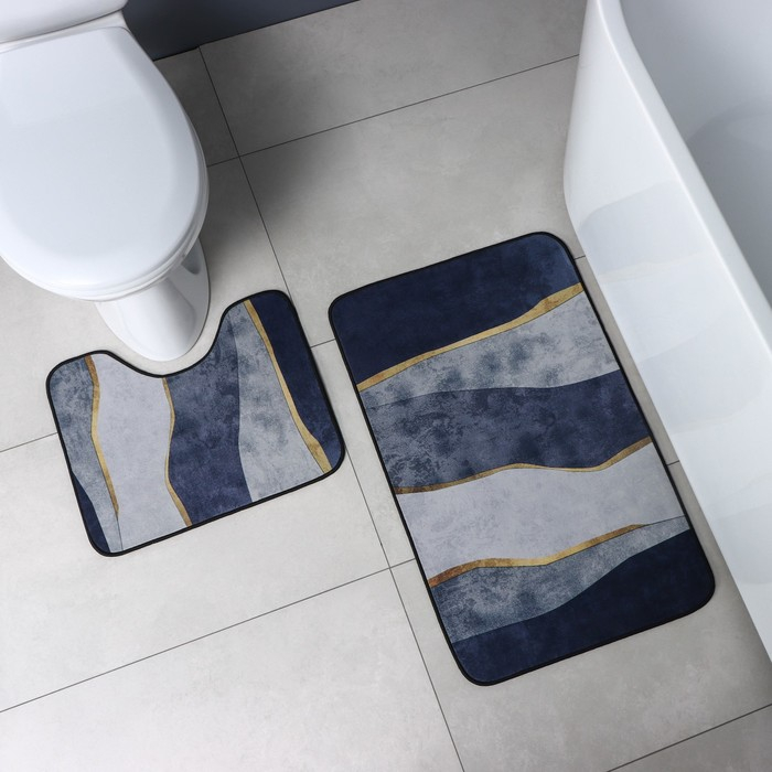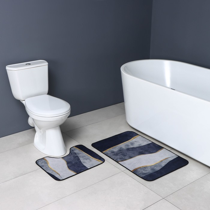 Коврики для ванной и туалета Доляна «Мрамор», 2 шт: 79×50 см, 50×39 см, цвет серый