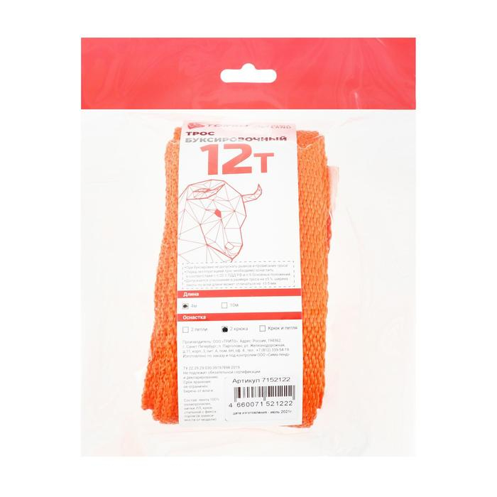 Трос-лента буксировочный TORSO, 12 т, 4 м, 2 крюка