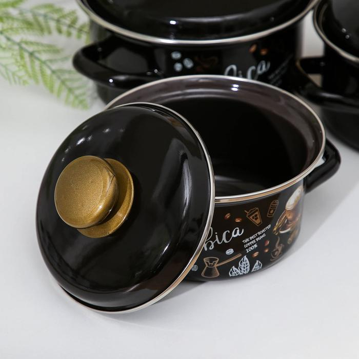 Набор эмалированных кастрюль «Арабика-1», 3 предмета: 1 л, 1,5 л, 2,3 л, индукция