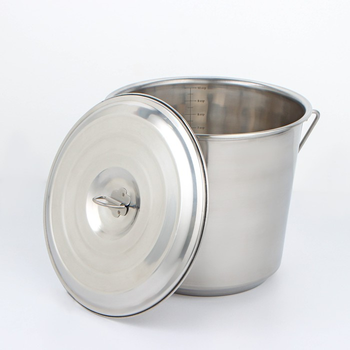 Ведро с крышкой, 10 л, мерная шкала, нержавеющая сталь
