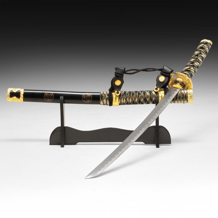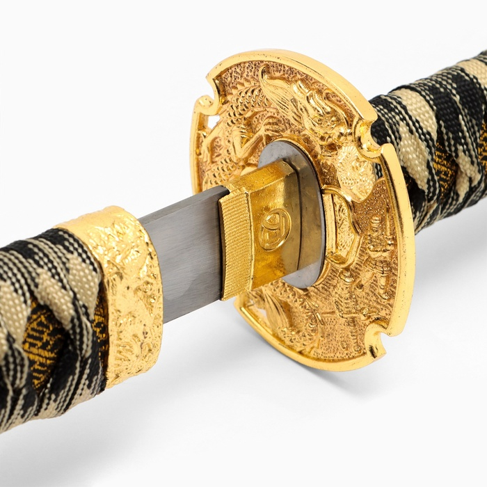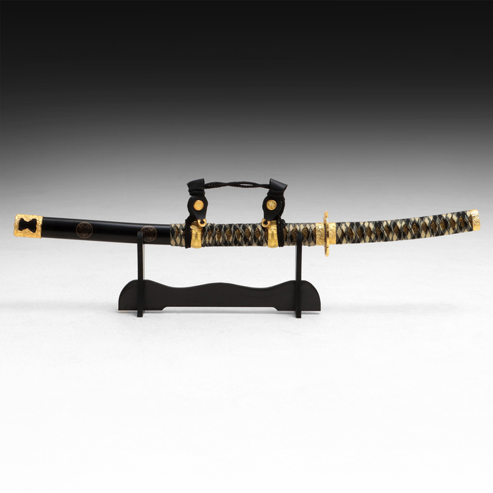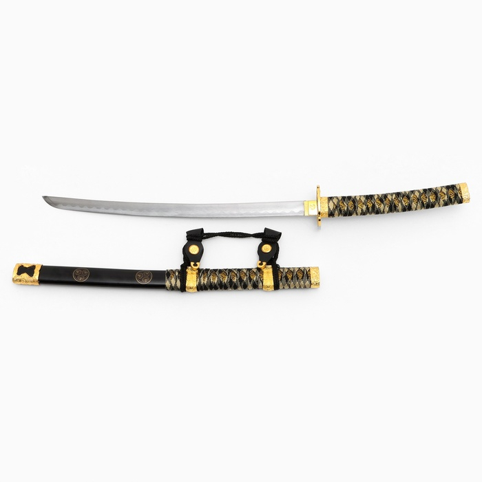Сувенирное оружие "Катана Хикэру" 78 см, чёрная с золотом, на подставке