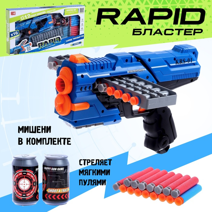 Бластер Rapid, стреляет мягкими пулями, в комплекте с мишенями, цвет МИКС